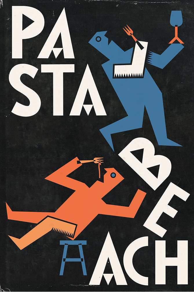 This inspiration is most evident in the expressive character Newfound developed as a central element of the identity. Named after Pasta Beach’s founder, Mr. R adds liveliness and a sense of joy to the brand. The Mr. R wordmark pays homage to the geometric hand drawn lettering Depero used throughout his work. The team iterated, refined, and tightened the mark to create a compact primary identifier for the restaurant.
